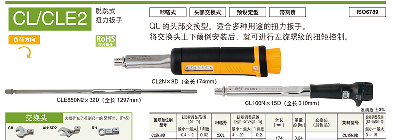 产品类型 预置式扭矩扳手(可换头)