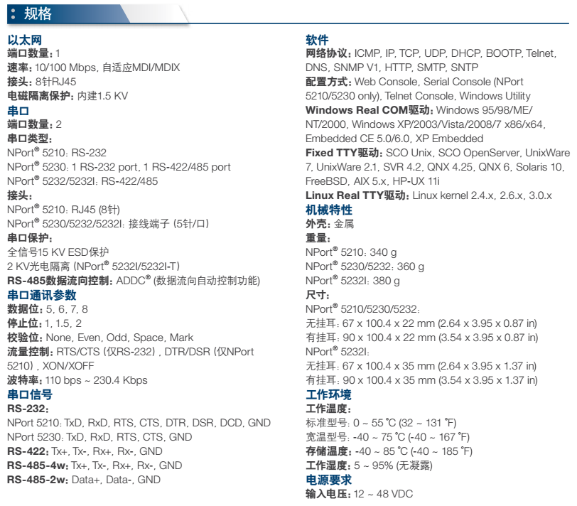 | 接口类型 | 1个RS-232口和1个RS-422/485口 |
