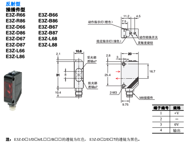 欧姆龙OMRON 光电传感器,E3Z-D87 BY OMC
