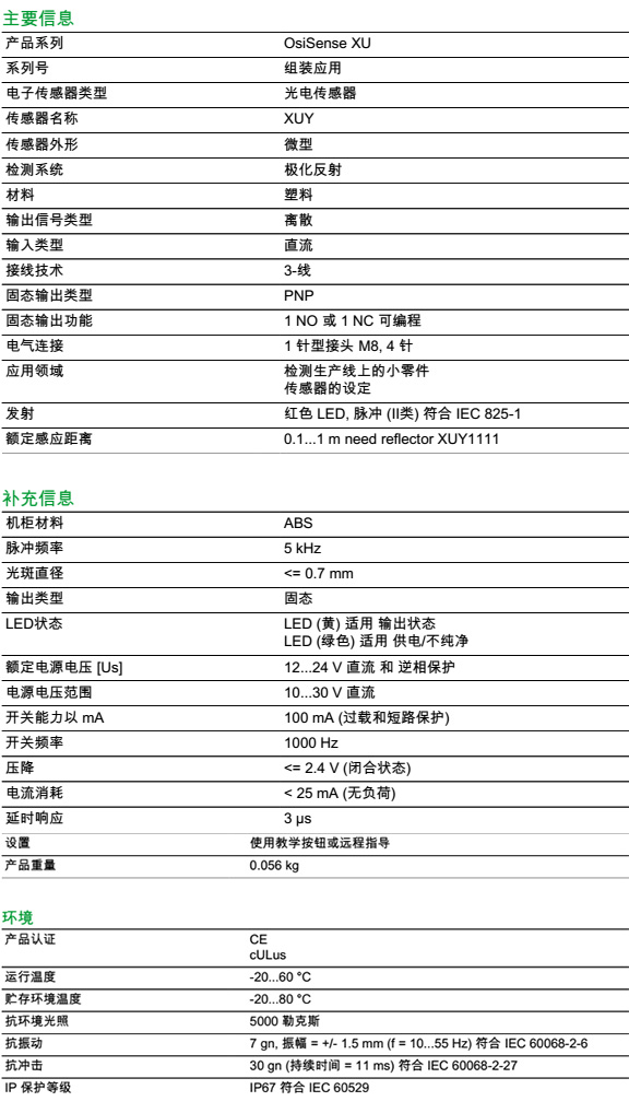 检测距离 0.1...1 m need reflector XUY1111