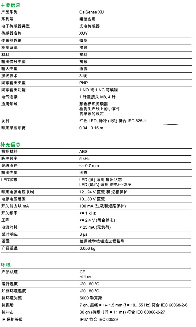 | 连接方式 | 1 针型接头 M8, 4 针 |