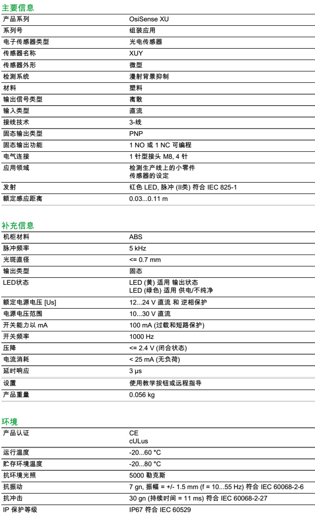 | 连接方式 | 1 针型接头 M8, 4 针 |