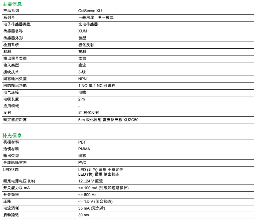 | 检测距离 | 5 m 极化反射 需要反光板 XUZC50 |