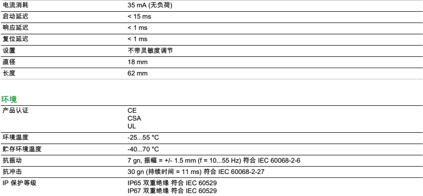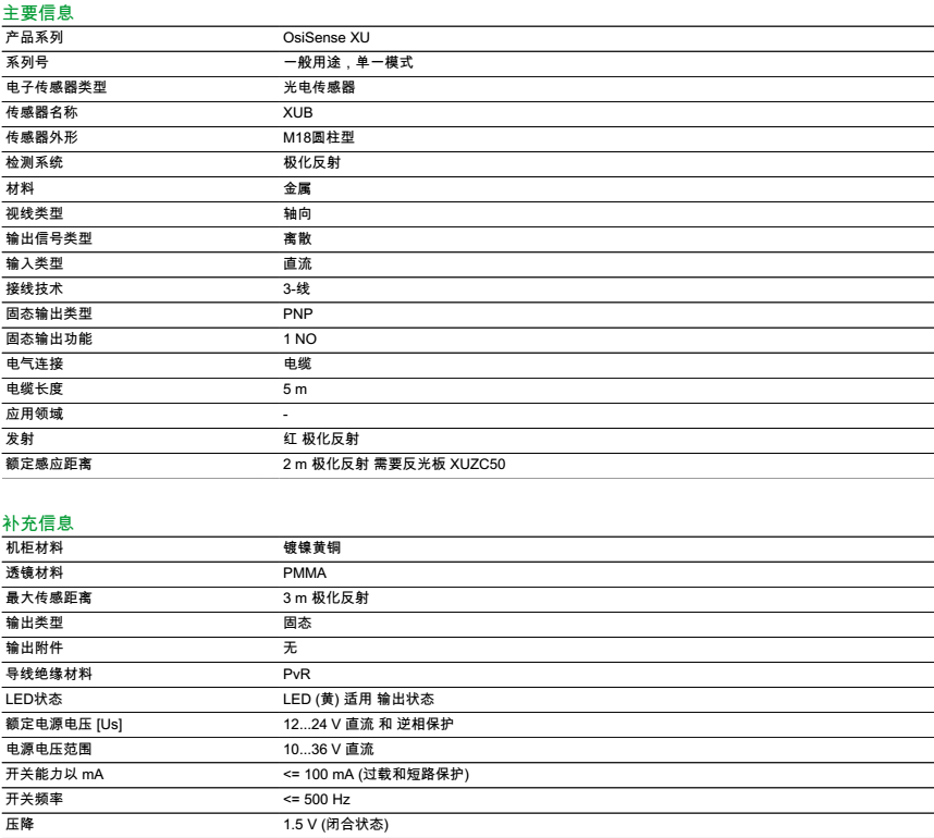 | 检测距离 | 2 m 极化反射 需要反光板 XUZC50 |