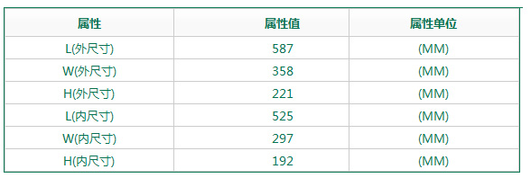 | 外形尺寸(宽×长×高mm) | 358×587×221 |