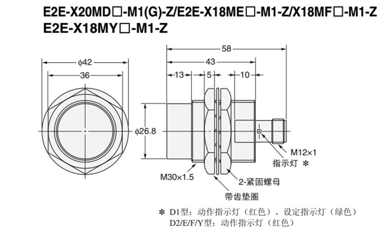 欧姆龙OMRON 接近开关,E2E-X20MD1-M1G-Z. BY OMS