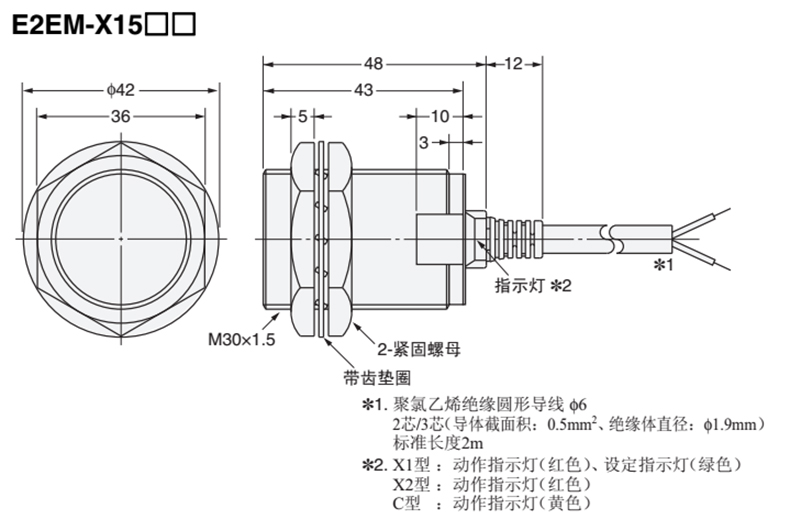 欧姆龙OMRON 接近开关,E2EM-X15C1 2M BY OMS