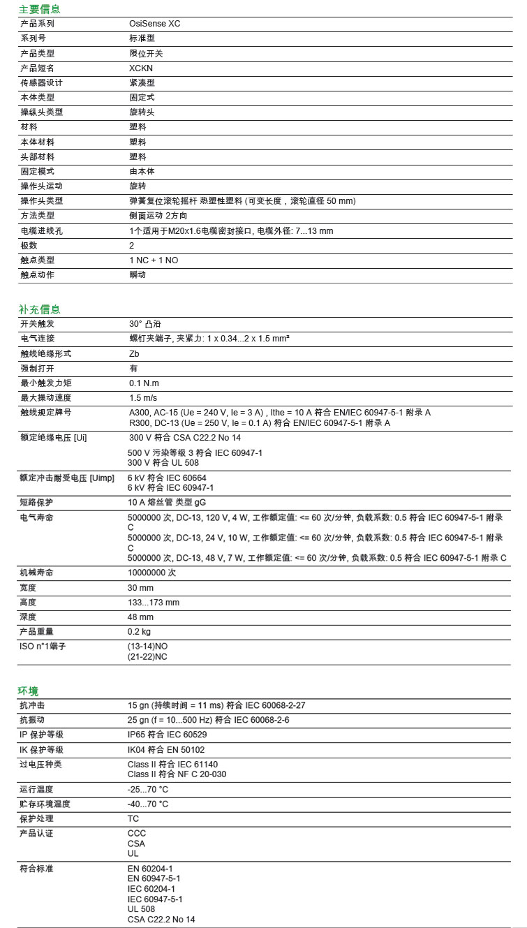 首页 > 工控 低压 电工 照明 > 传感器和编码器 > > 施耐德Telemecanique 限位开关, XCKN2149P20C