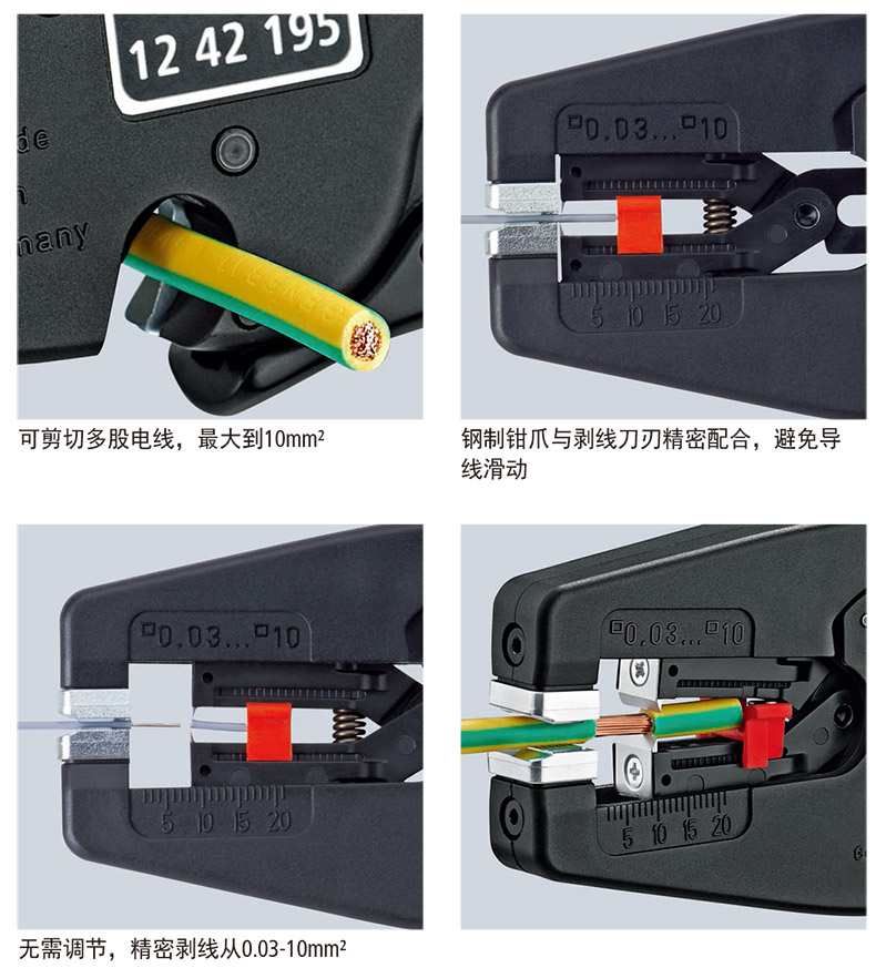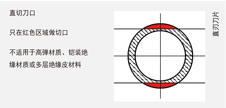 剥线刃口的切口深度完全根据标准绝缘导线的直径以及厚度自动调节。