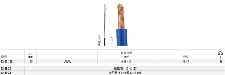 > 可根据绝缘皮厚度自动调节刀口,适用于PVC绝缘材质以及一部分的特殊绝缘材质在0.03—10mm2的单股,多股和细线剥线
