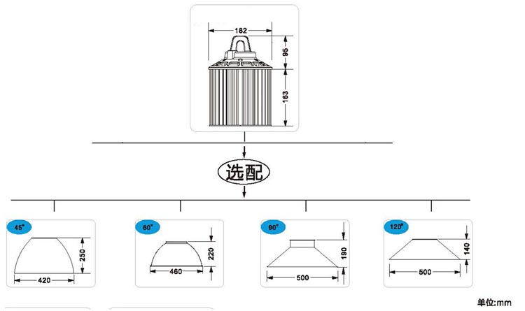 多种配光设计,鳞片式高纯铝反光罩可选择45°、60°、90°、120°等多角度,满足专业配光,适用于各种场所。
