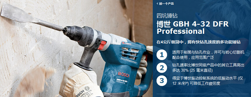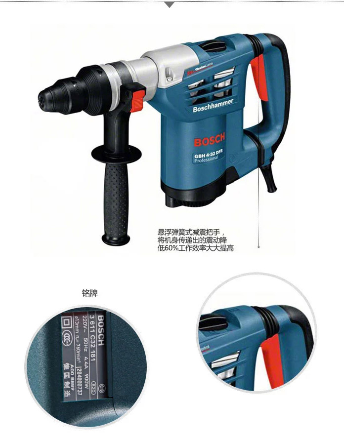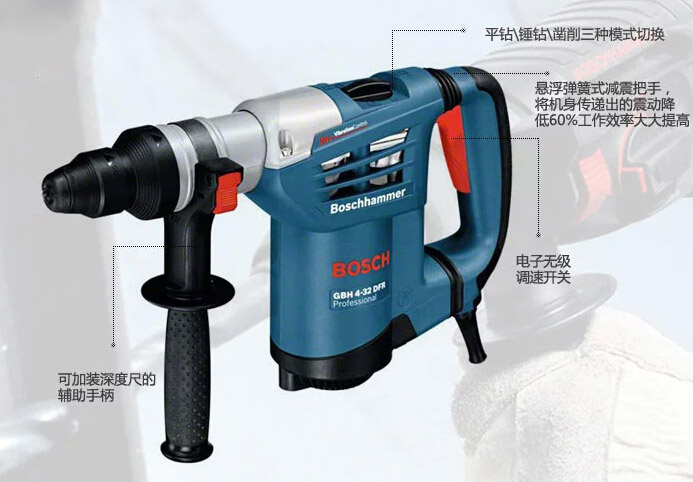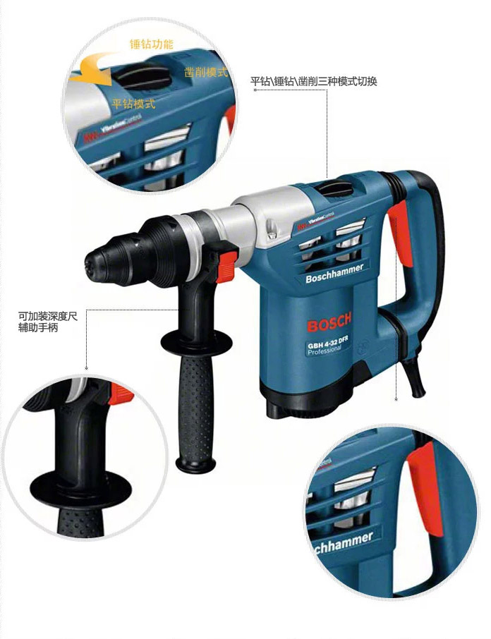 博世四坑电锤,4.7kg 四坑正反转可调速式,900W,GBH 4-32DFR,0611332182