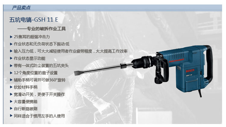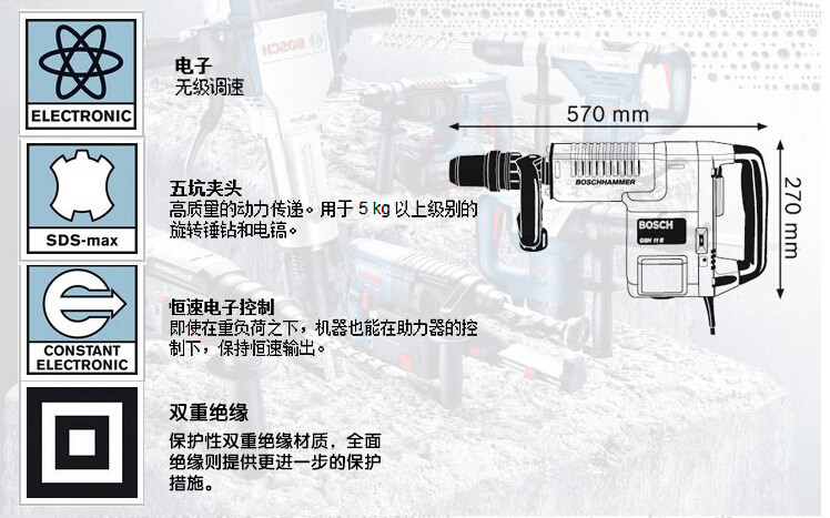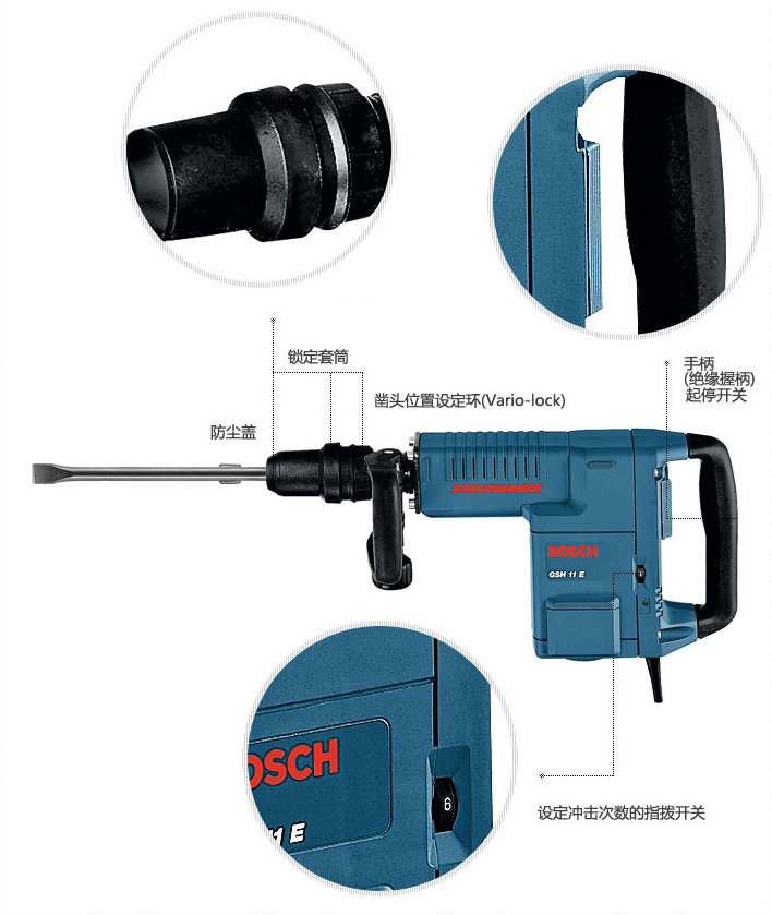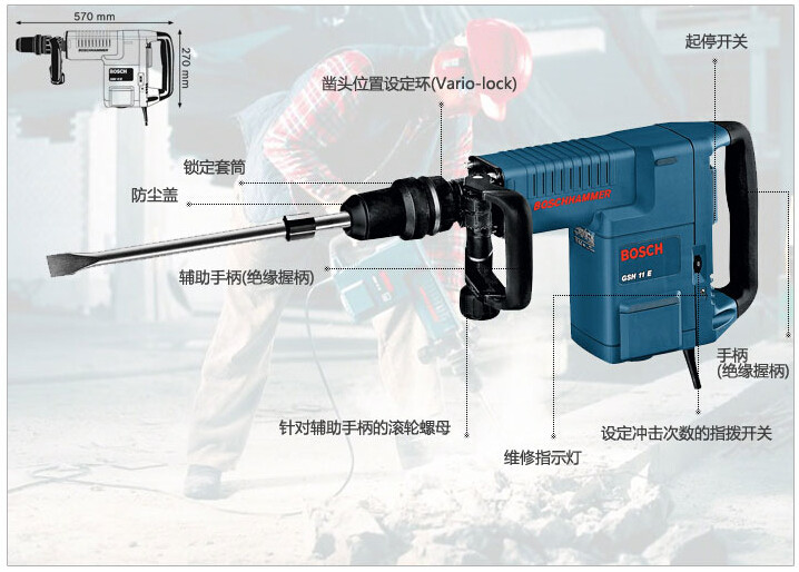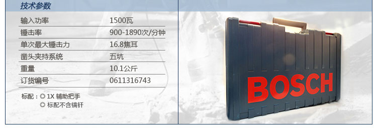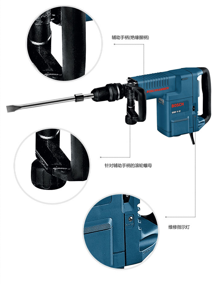 | 标准附件 | 辅助手柄、尖凿400mm |