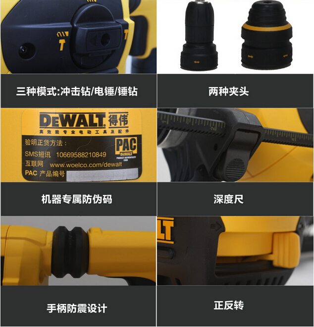 | 标准附件 | 侧把手、深度尺、可拆卸夹头、工具箱 |