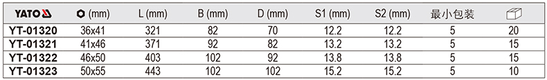 易尔拓双头呆扳手,50*55mm,YT-01323