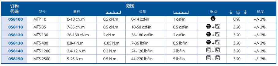 | 扭矩测定范围(lbf.in) | - |