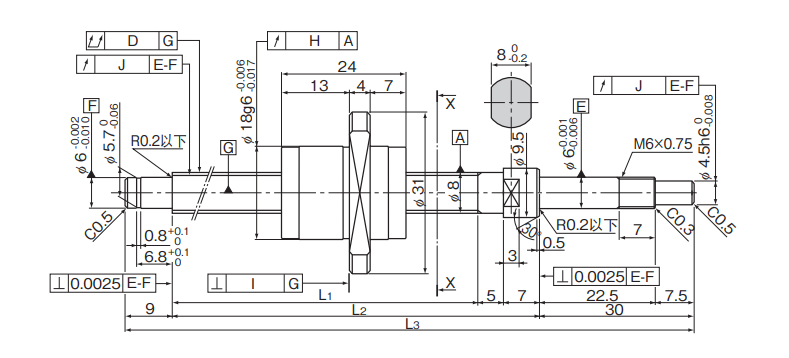| 丝杠轴 轴心的振摆 D | 0.065 |
