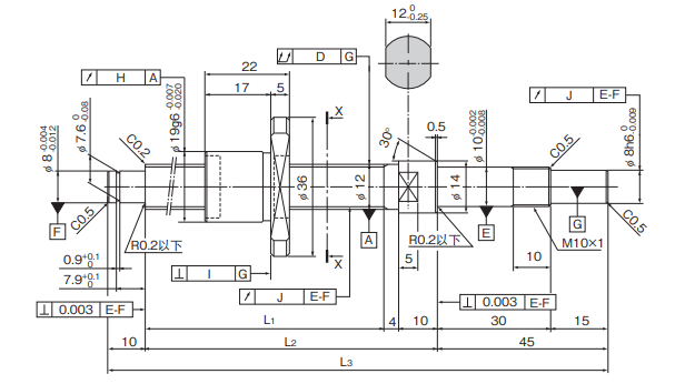 | 丝杠轴 轴心的振摆 D | 0.03 |
