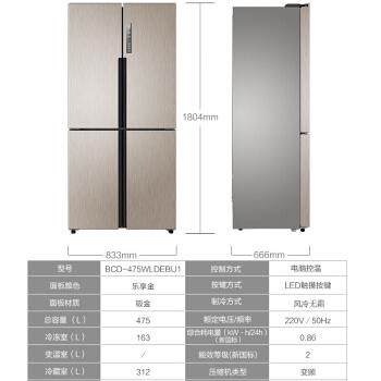 (调货) 海尔 统帅 BCD-475WLDEBUI 475升 乐享金 十字对开冰箱