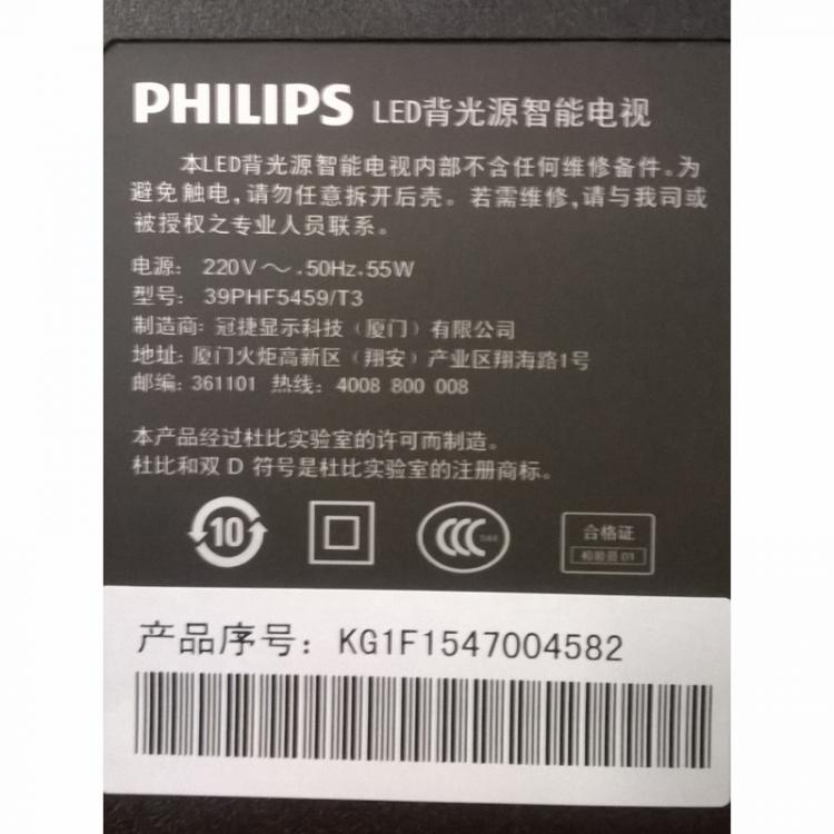 (调货) 飞利浦(PHILIPS)39PHF5459(黑色)39英寸安卓智能网络电视 (含底座)