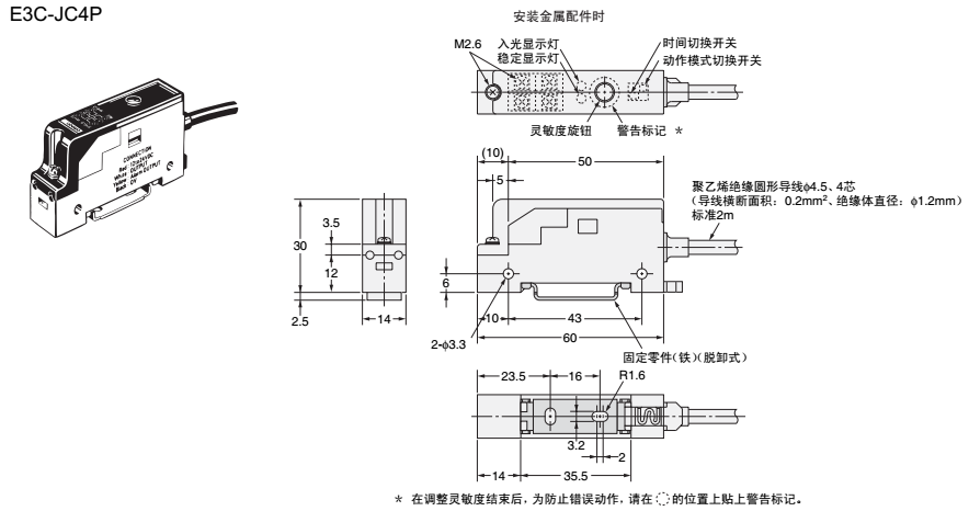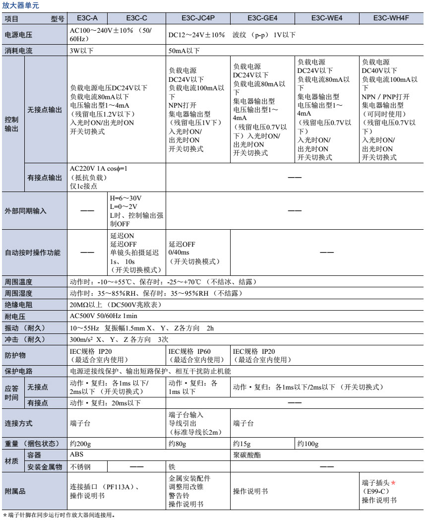 欧姆龙OMRON 光电传感器,E3C-JC4P 2M