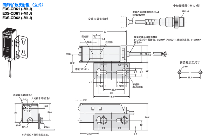 欧姆龙OMRON 光电传感器,E3S-CD62 2M BY OMS