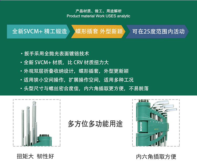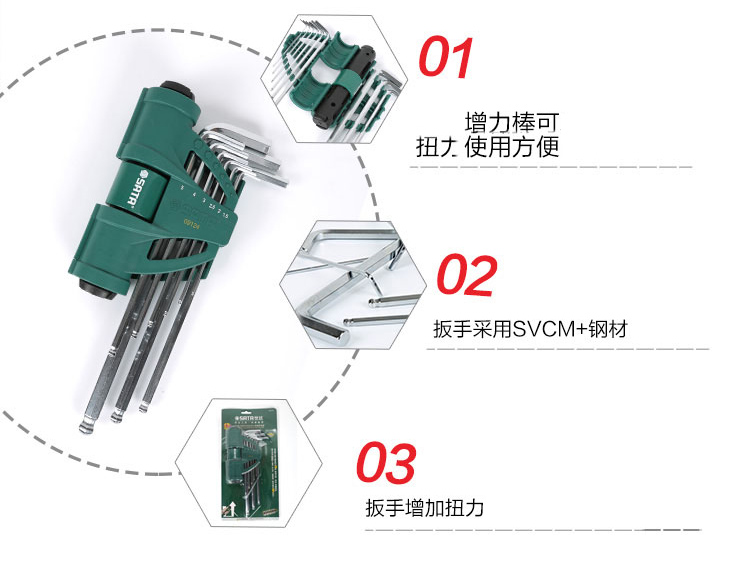 | 描述 | 9件套增力型公制加长球头内六角扳手套装 |