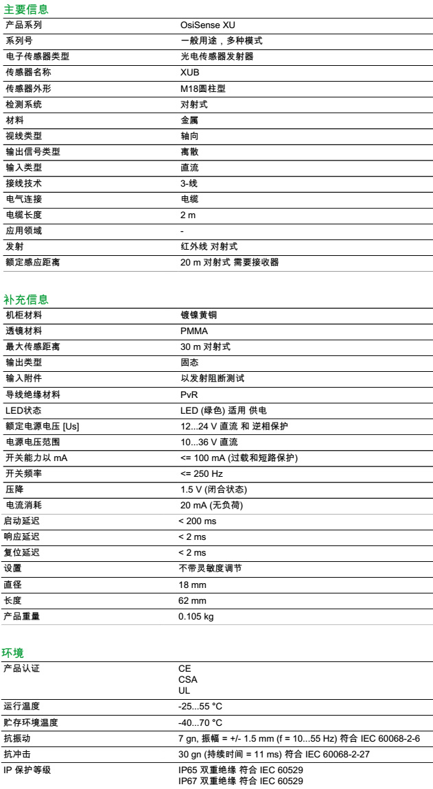 | 检测距离 | 20 m 对射式 需要接收器 |