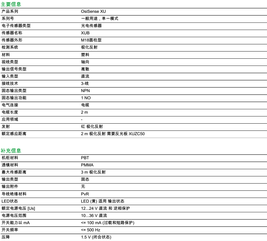 检测距离 2m 极化反射 需要反光板 XUZC50