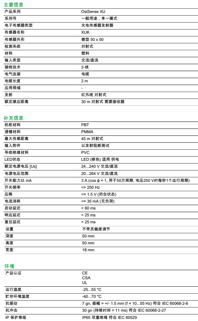 | 检测距离 | 30 m 对射式 需要接收器 |