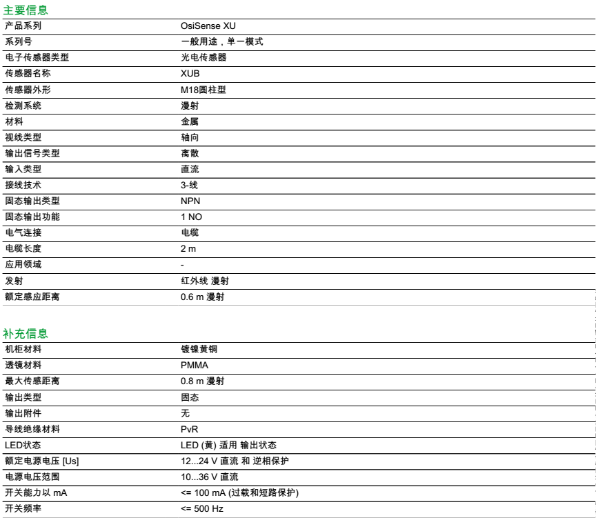 首页 > 工控 低压 电工 照明 > 传感器和编码器 > > 施耐德Telemecanique 光电传感器, XUB5BNANL2
