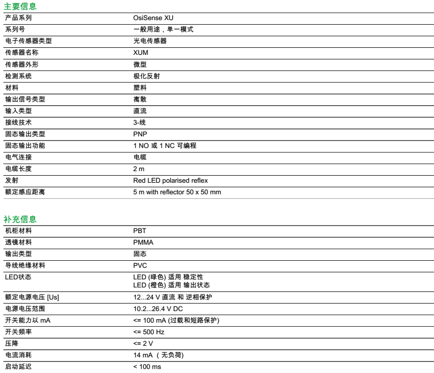 | 检测距离 | 5 m with reflector 50 x 50 mm |