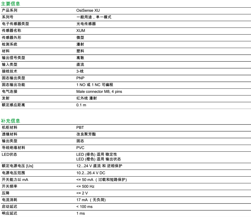 | 连接方式 | 1 针型接头 M8, 4 针 |