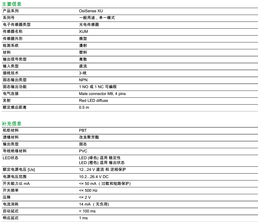 | 连接方式 | 1 针型接头 M8, 4 针 |