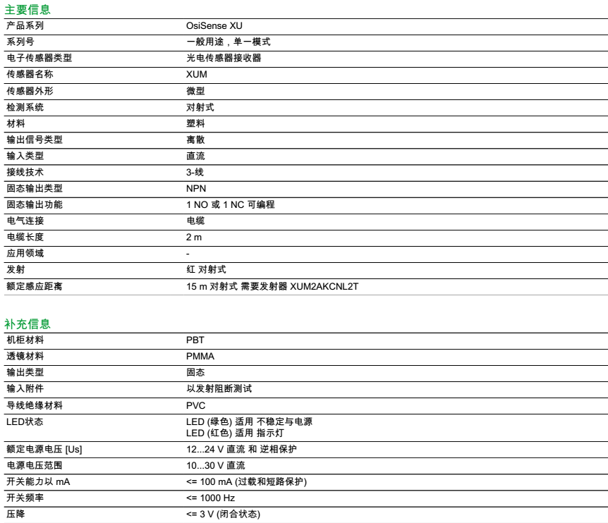 检测距离 15 m 对射式 需要发射器 XUM2AKCNL2T