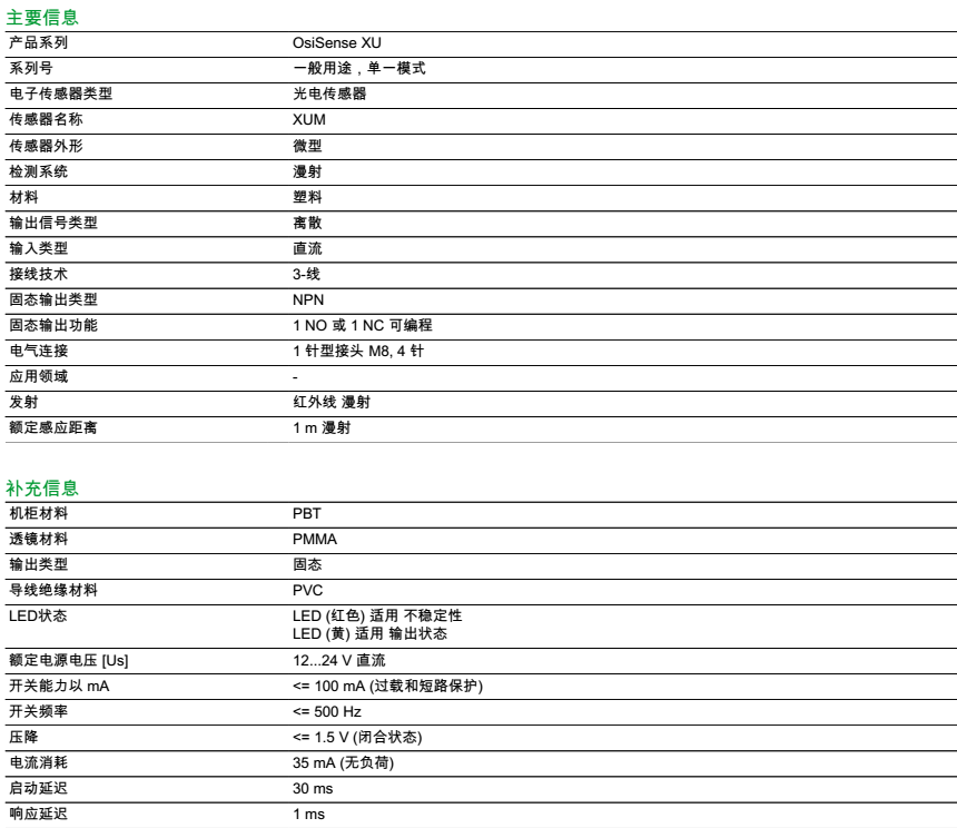 | 连接方式 | 1 针型接头 M8, 4 针 |