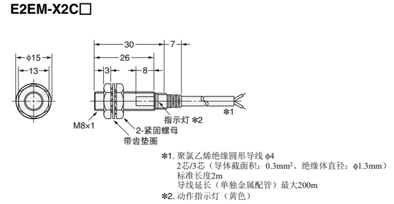 欧姆龙OMRON 接近开关,E2EM-X2C1 2M BY OMS