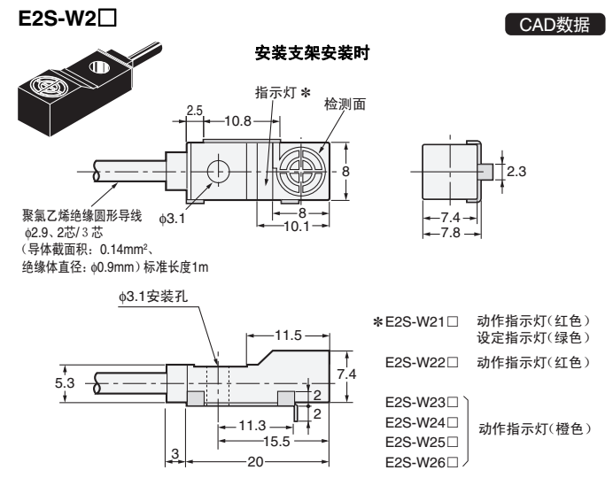 欧姆龙OMRON 接近开关,E2S-W21 2M BY OMS