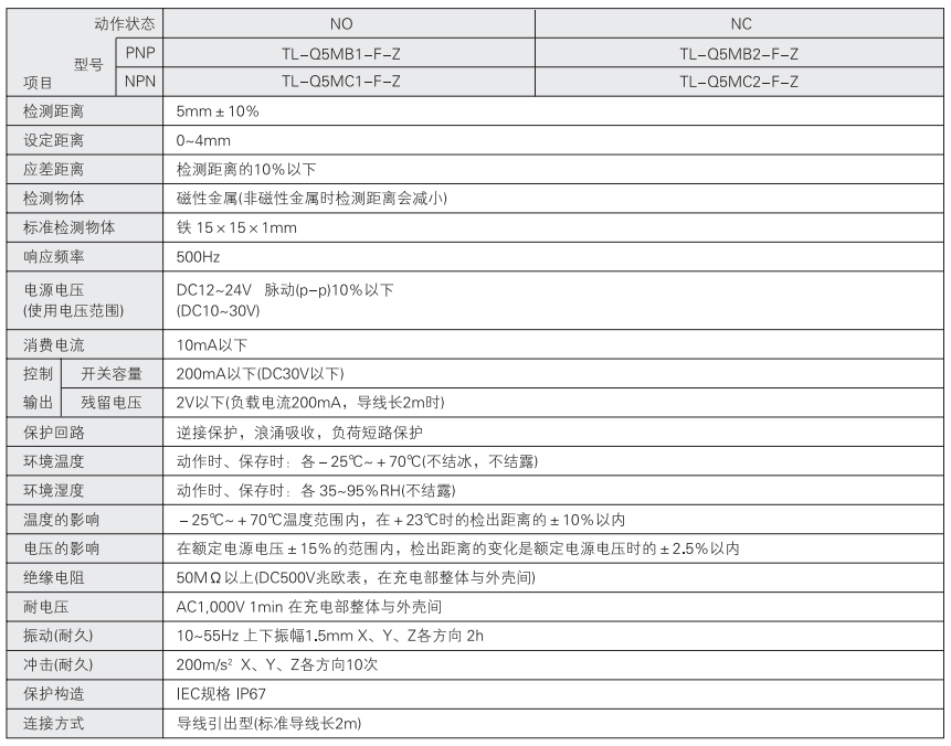 | 检测距离 | 5mm±10% |