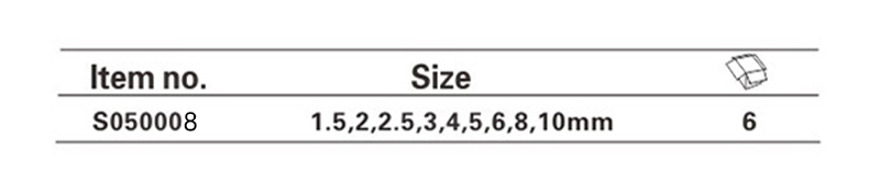 | 规格 | 1.5,2,2.5,3,4,5,6,8,10mm |