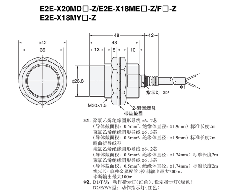 品牌型号 欧姆龙 E2E-X20MD2-Z 2M BY OMS