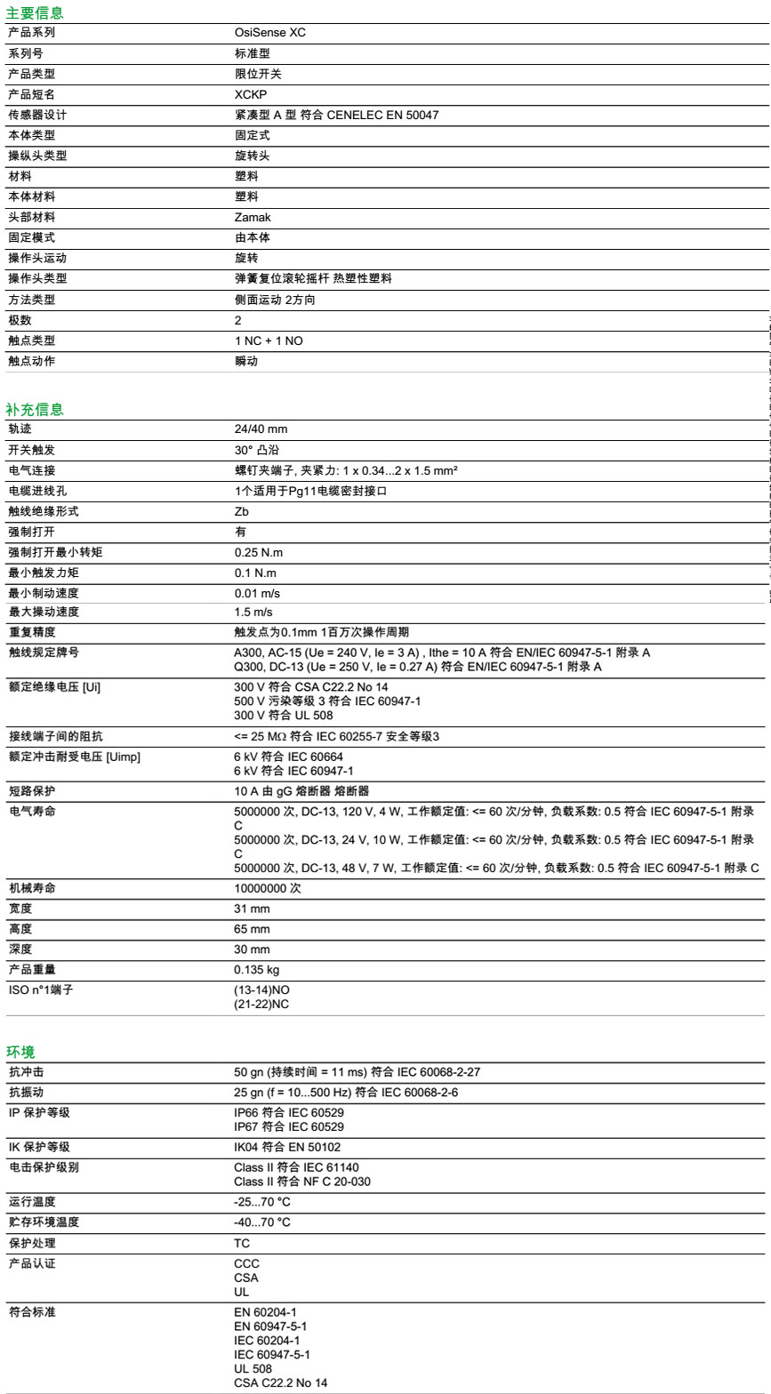 | 触头类型 | 1 NC + 1 NO |