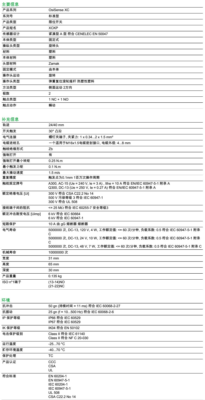 首页 > 工控 低压 电工 照明 > 传感器和编码器 > > 施耐德Telemecanique限位开关,XCKP2118P16