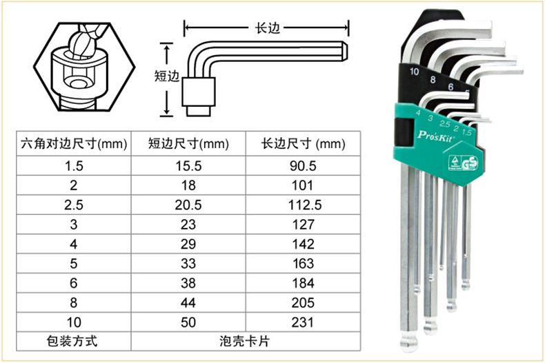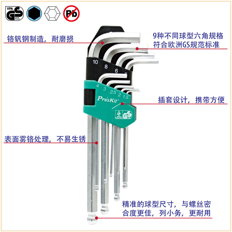 | 描述 | 9件公制长球头内六角扳手套装 |