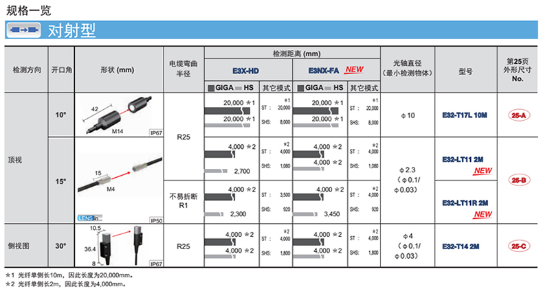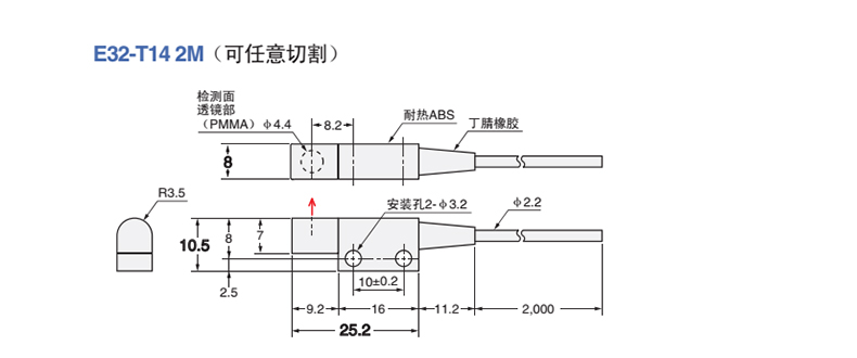 欧姆龙OMRON 光纤传感器附件,E32-T14 2M