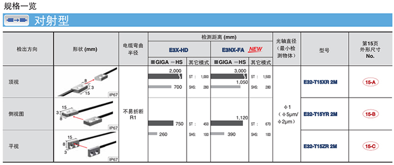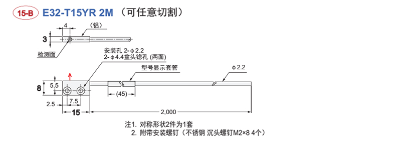 欧姆龙OMRON 光纤传感器附件,E32-T15YR 2M