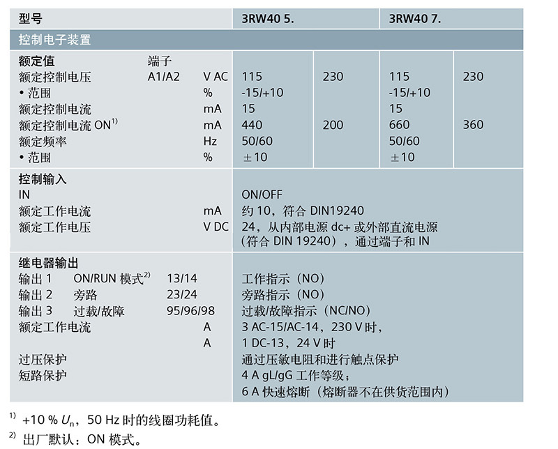 作为选项,晶闸管也可由 SITOR 半导体熔断器提供短路保护,以便短路(协调类型 2)后,软起动器不被损坏。3RW40 软起动器应用了 3 个 LED 来指示工作状态及可能的故障,例如不允许的脱扣时间(脱扣等级设定)、电源或相位故障、负载缺失、热过载或设备故障。