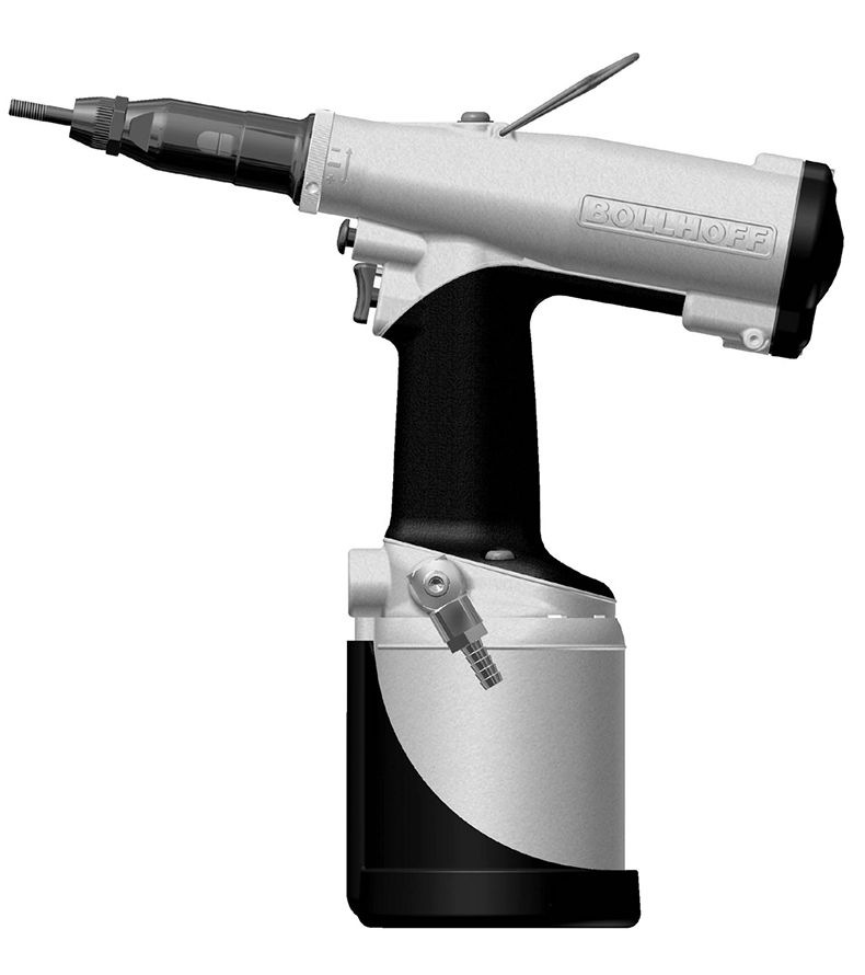 铆螺母旋到芯轴上,气动安装,扳机操作旋转脱离,调节环控制行程,通过卡扣锁转转芯轴。操作简单方便,拉铆螺母枪P2005有着较宽尺寸的螺母铆接范围,适合大多数铆接作业需要,能够快速可靠安装铆螺母和铆螺柱。使用时请根据需要设置不同的行程