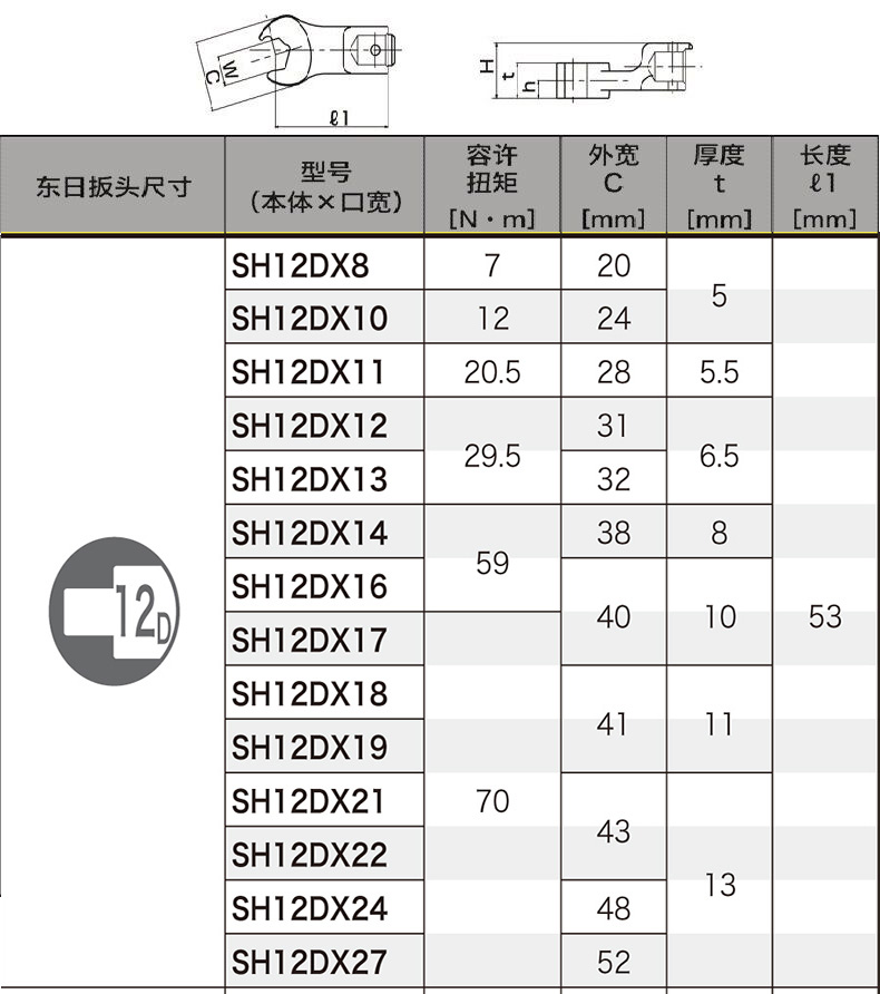首页 > 工具 工具耗材 焊接 > 扭力工具 > > 东日开口扳手头,17mm,SH12D*17