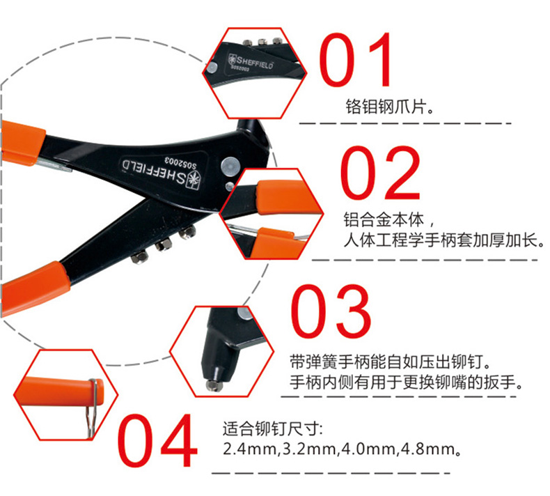 铆接范围 2.4mm-4.8mm